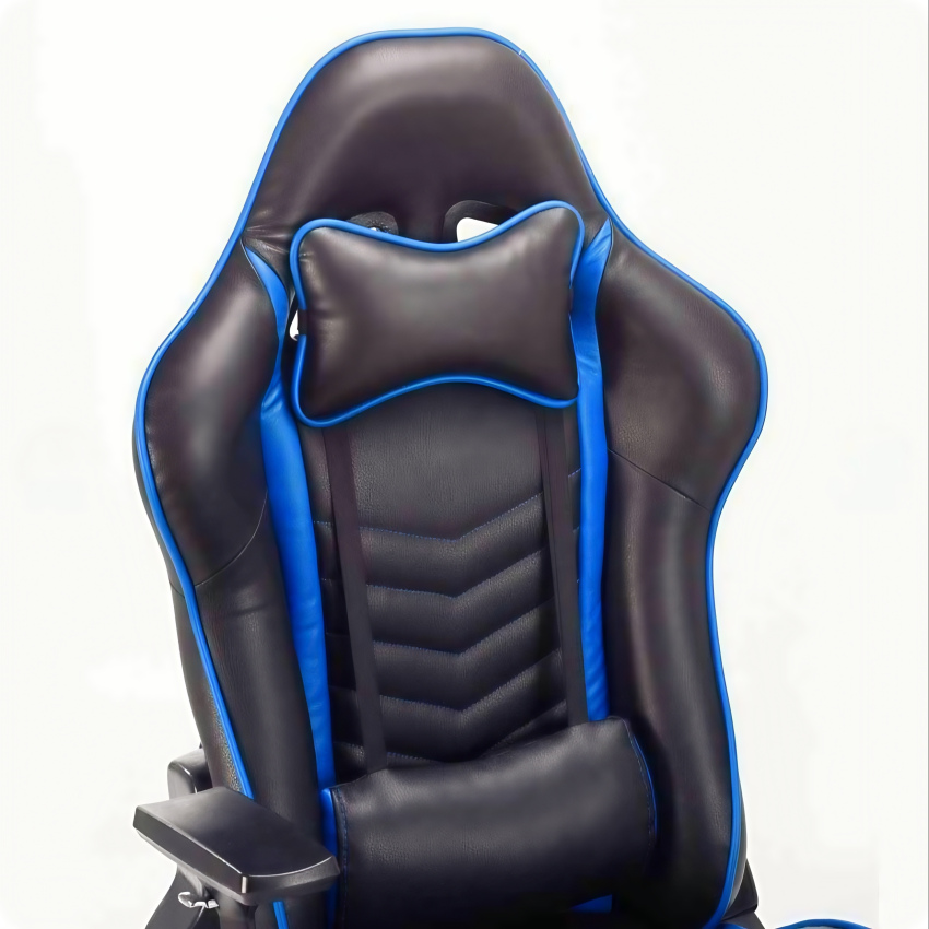 برای صندلی گیمینگ Blue از 2 بالشتک بهره گرفتهاند. این بالشتکها را میتوانید در بالا و پایین تکیهگاه نصب کنید و از آنها استفادهای عالی برای تأمین راحتیتان حین بازی داشته باشید. بالشتکی که در بالای تکیهگاه نصب میشود، بالشتکی برای تکیهدادن سر و گردن است. بالشتکی هم که در پایین تکیهگاه نصب میشود، بالشتکی است که بهخوبی در پُر کردن گودی کمر کاربرد دارد. زمان نشستن روی صندلی، میتوانید کمرتان را به بالشتک پایینی تکیه دهید و تا اندازهی زیادی از درد کمر جلوگیری کنید.